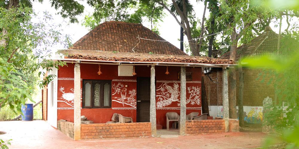 The Jayakanthan Room mirrors the writer’s courage and thoughtfulness. Its open layout, calming color palette, and vintage accents encourage introspection and creative flow. Perfect for couples or quiet travelers, this room becomes your personal writing retreat under Tiruvannamalai’s serene skies. Suitable for two guests, with two optional extra beds (₹500 each).