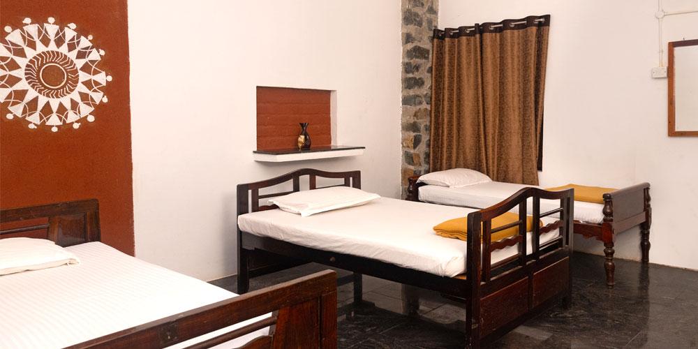 Named after the modern master of subtlety, the Asokamithran Room embraces elegance through simplicity. The interiors feature soft lighting, neat lines, and cozy bedding that invite restful nights. Mornings here begin with birdsong and the scent of freshly brewed coffee from the courtyard café. Ideal for two guests, with two optional extra beds (₹500 each).