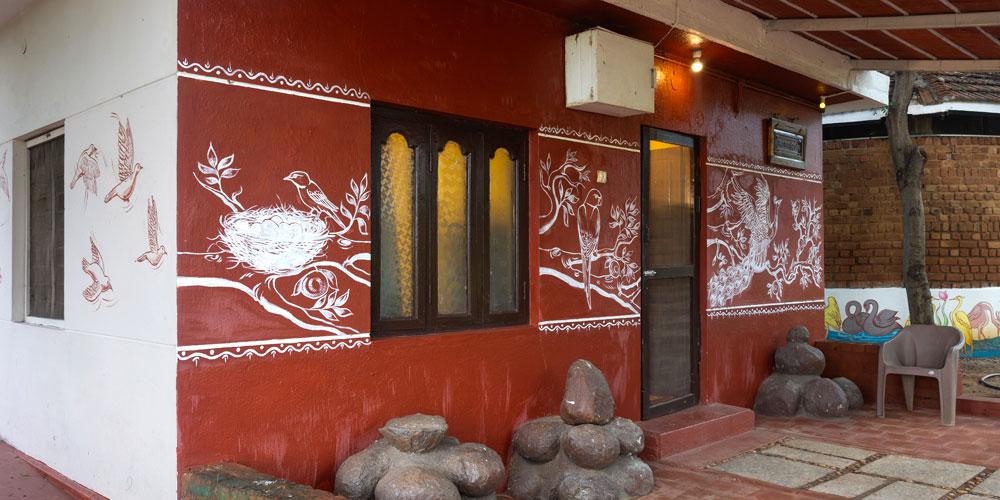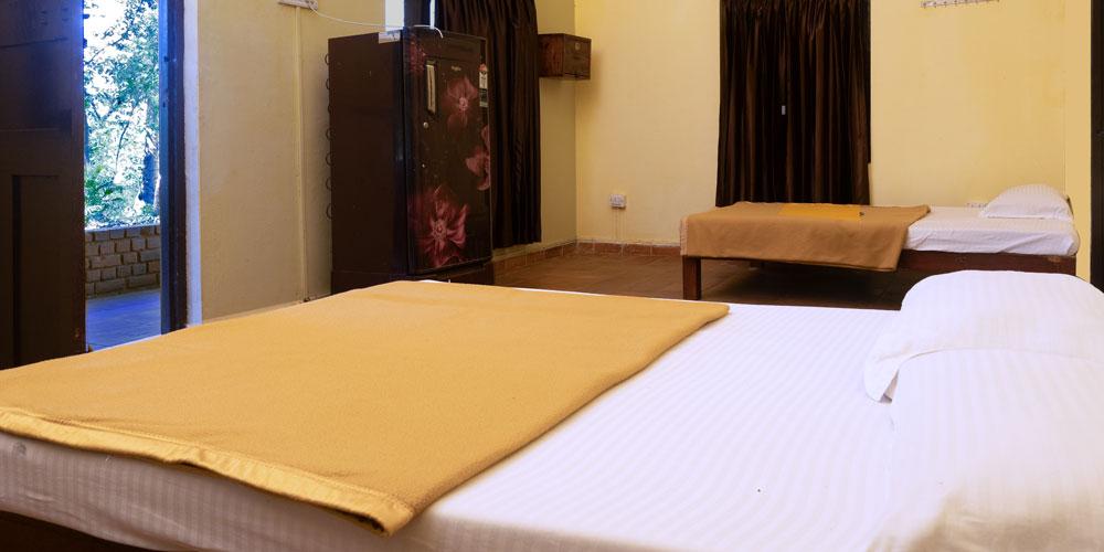 The Jayakanthan Room mirrors the writer’s courage and thoughtfulness. Its open layout, calming color palette, and vintage accents encourage introspection and creative flow. Perfect for couples or quiet travelers, this room becomes your personal writing retreat under Tiruvannamalai’s serene skies. Suitable for two guests, with two optional extra beds (₹500 each).