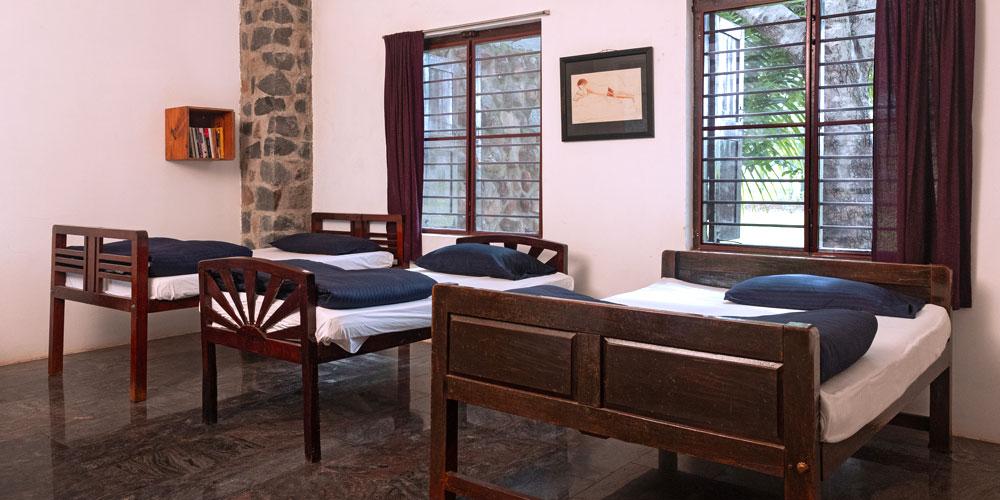 Inspired by the soulful works of Nagarajan, this room captures the essence of reflection and peace. Its minimal yet meaningful décor allows space for thought — a perfect sanctuary for writers, thinkers, or those seeking stillness. Large windows open to garden views, where the morning sun paints everything golden. Designed for two guests, with two optional extra beds (₹500 each).